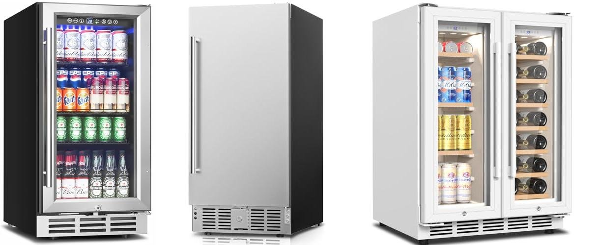 2. Feelfunn 15 Inch Under Counter Beverage Refrigerator – 126 Cans Beverage Fridge with Stainless Steel Door for Beer Wine Soda – Built-in or Freestanding Wine Cooler for Home Kitchen Bar