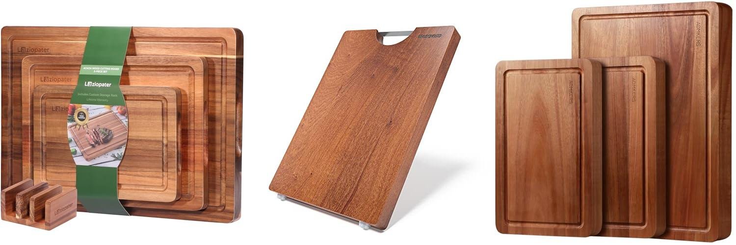 - Durable Acacia Wood: Made from strong, 30-year-old acacia wood, these boards are built to last and resist cracking or warping thanks to a special triple-layer water-locking technology.