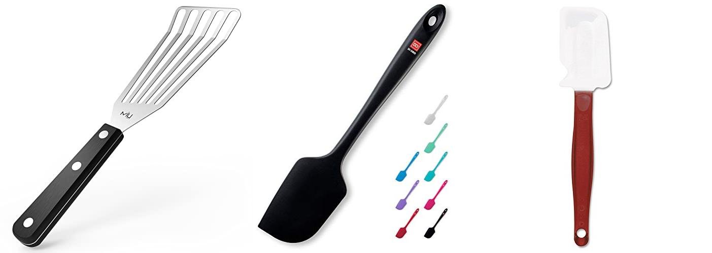 For stirring sauces or mixing ingredients, a spatula with a comfortable handle and a head that can mix well is important. Silicone and wood are good choices.
