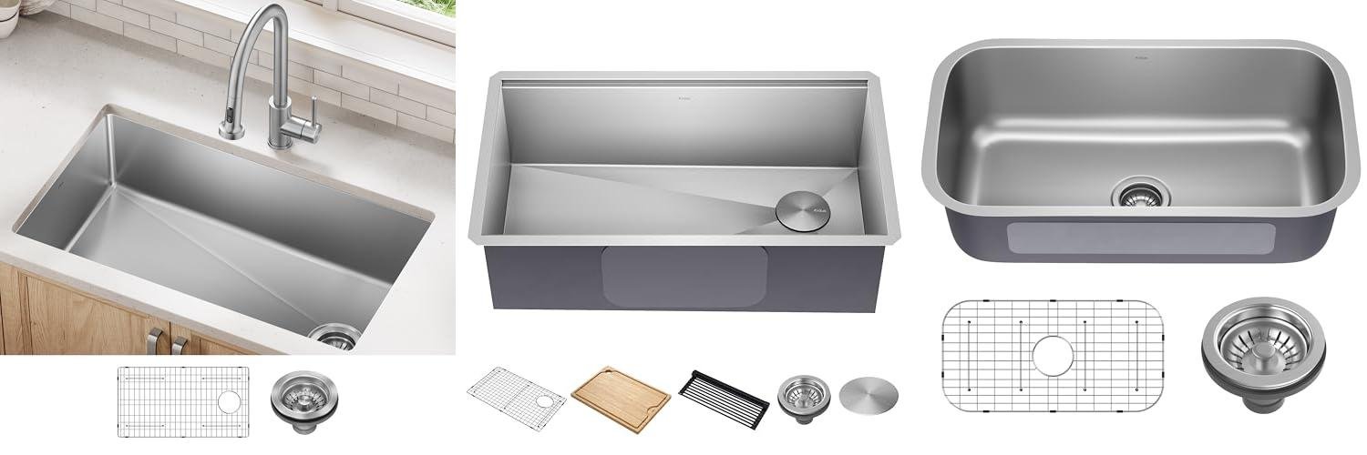 2. KRAUS Kore 32-Inch Undermount Workstation 16 Gauge Single Bowl Stainless Steel Kitchen Sink with Accessories