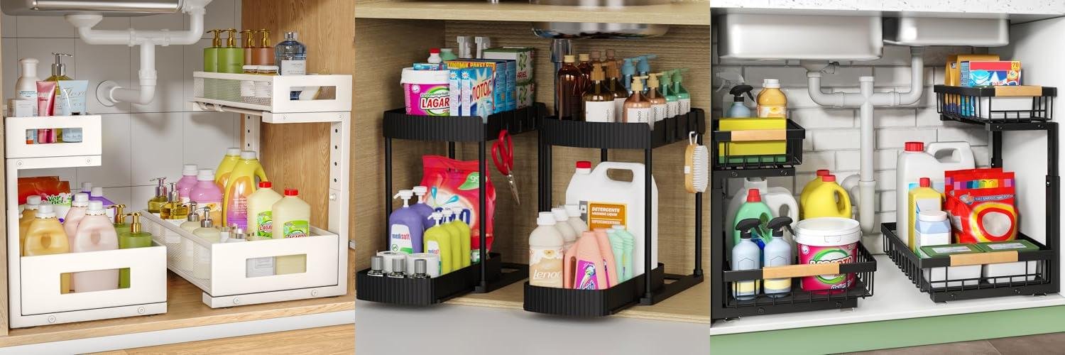 These under-sink organizers offer a fantastic way to declutter and get easy access to your essentials. They’re a smart and sturdy solution for any cabinet or closet space.