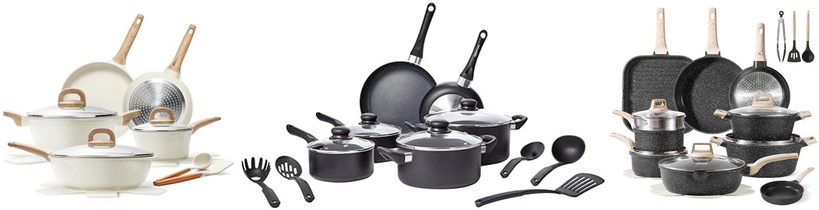 This Amazon Basics cookware set is a good choice for cooks. It is a good value for the price.