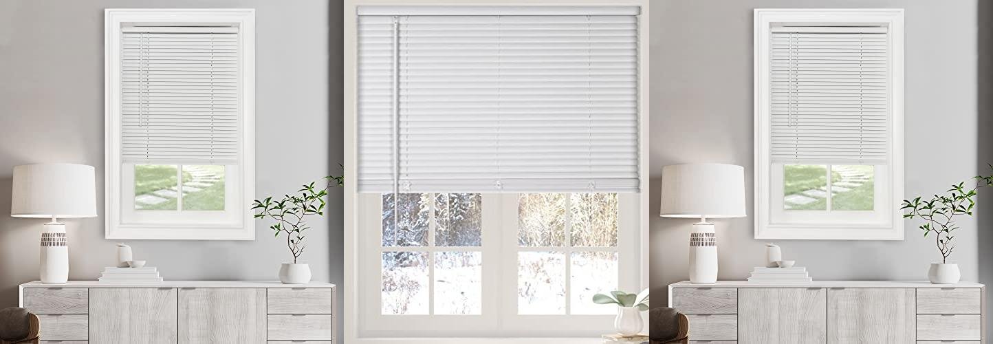 - These blinds are made from durable vinyl that is also moisture-resistant. This makes them ideal for kitchens, bathrooms, or basements where humidity is higher.