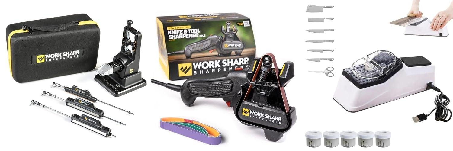 Work Sharp makes sharpeners that are easy to use for everyone. They use different methods to bring your knives back to life. Whether you have kitchen knives, hunting knives, or pocket knives, Work Sharp has a tool for you.